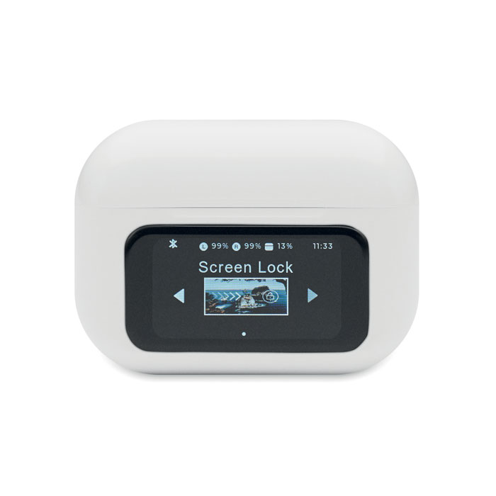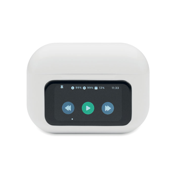 Bezdrátová 5.0 stereo sluchátka (30 mAh) True Wireless Stereo (TWS) z ABS s ANC/ENC a mikrofonem. Nabíjecí základna 230 mAh. Dotykový displej.