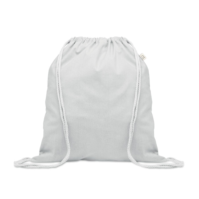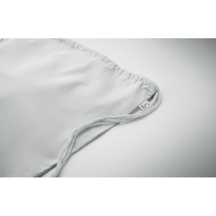 Batoh se stahovací šňůrkou z recyklované předspotřební bavlny (70 %) a RPET (30 %). 140 gr/m².