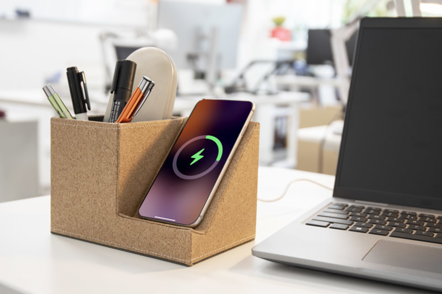COVBI je funkční stolní organizér z přírodního korku. Tato vychytávka kombinuje box na psací potřeby s 15W bezdrátovou nabíječkou, která je ideální pro rychlé nabíjení telefonu. Navíc je součástí balení kabel USB-C pro rychlé a bezpečné připojení k napájení. COVBI vnese do vašeho pracovního prostoru pořádek a moderní technologie.