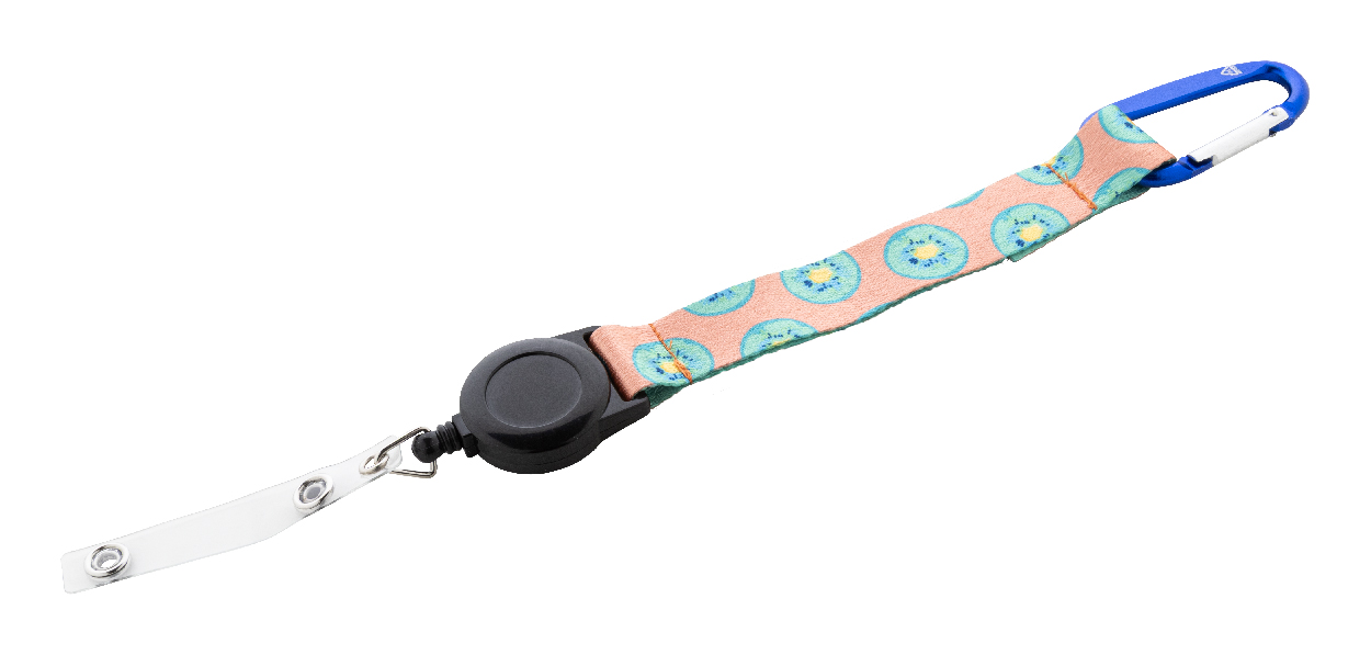 Na zakázku vyrobený RPET polyesterový přívěsek na klíče se sublimační tištěnou grafikou na obou stranách. S vnitřním štítkem RPET, teleskopickým držákem na průkaz, hliníkovou karabinou a kovovým kroužkem na klíče. Cena zahrnuje sublimační tisk, nezahrnuje tiskovou přípravu. Min. mn.: 100 ks.