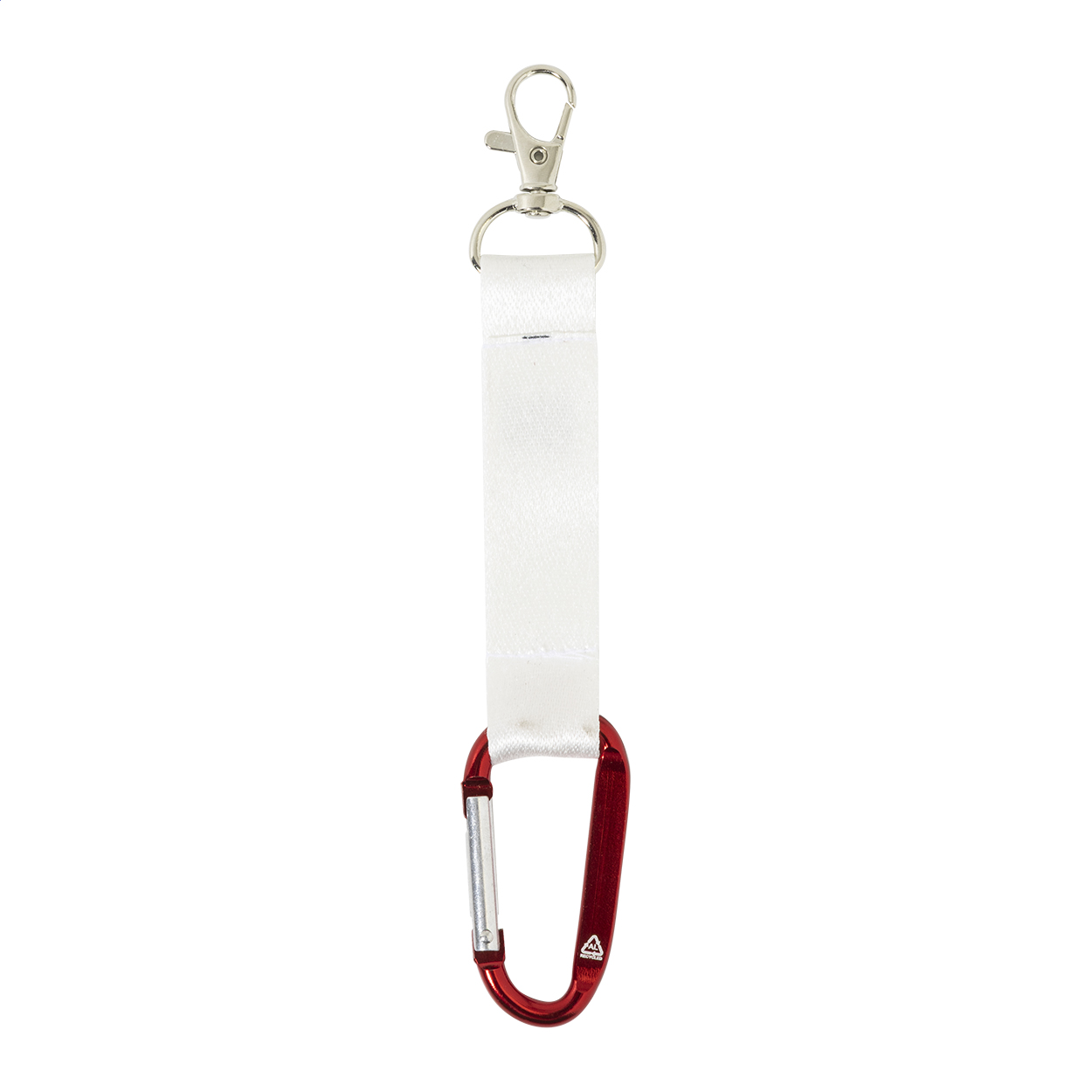 Mini přívěsek na klíče z polyesteru RPET vyrobený na zakázku se sublimačním potiskem po obou stranách. S malou kovovou a velkou karabinou z recyklovaného hliníku. Cena nezahrnuje tiskovou přípravu. Min. mn.: 100 ks.