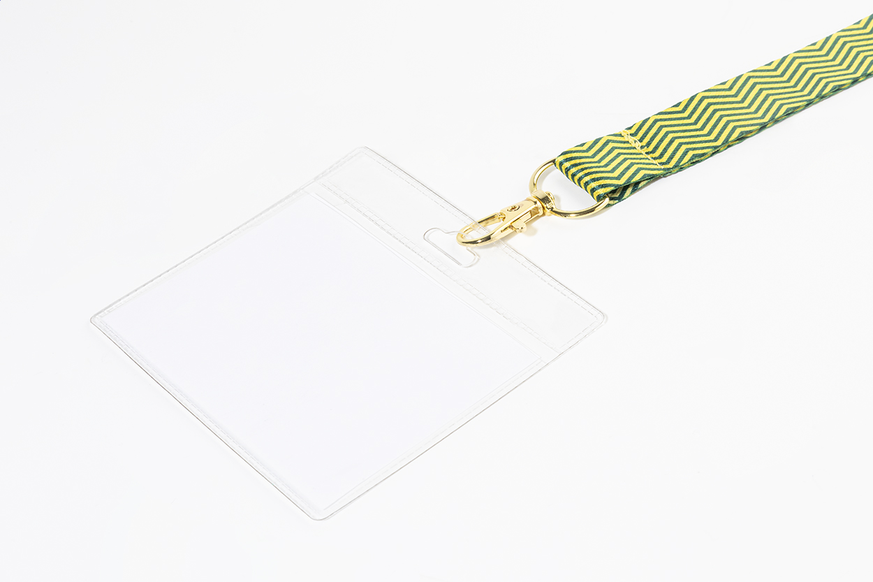 Lanyard na zakázku z RPET s barevnou kovovou karabinou. S oboustranně potištěnou grafikou, cena nezahrnuje tiskovou přípravu. Min. mn.: 100 ks.