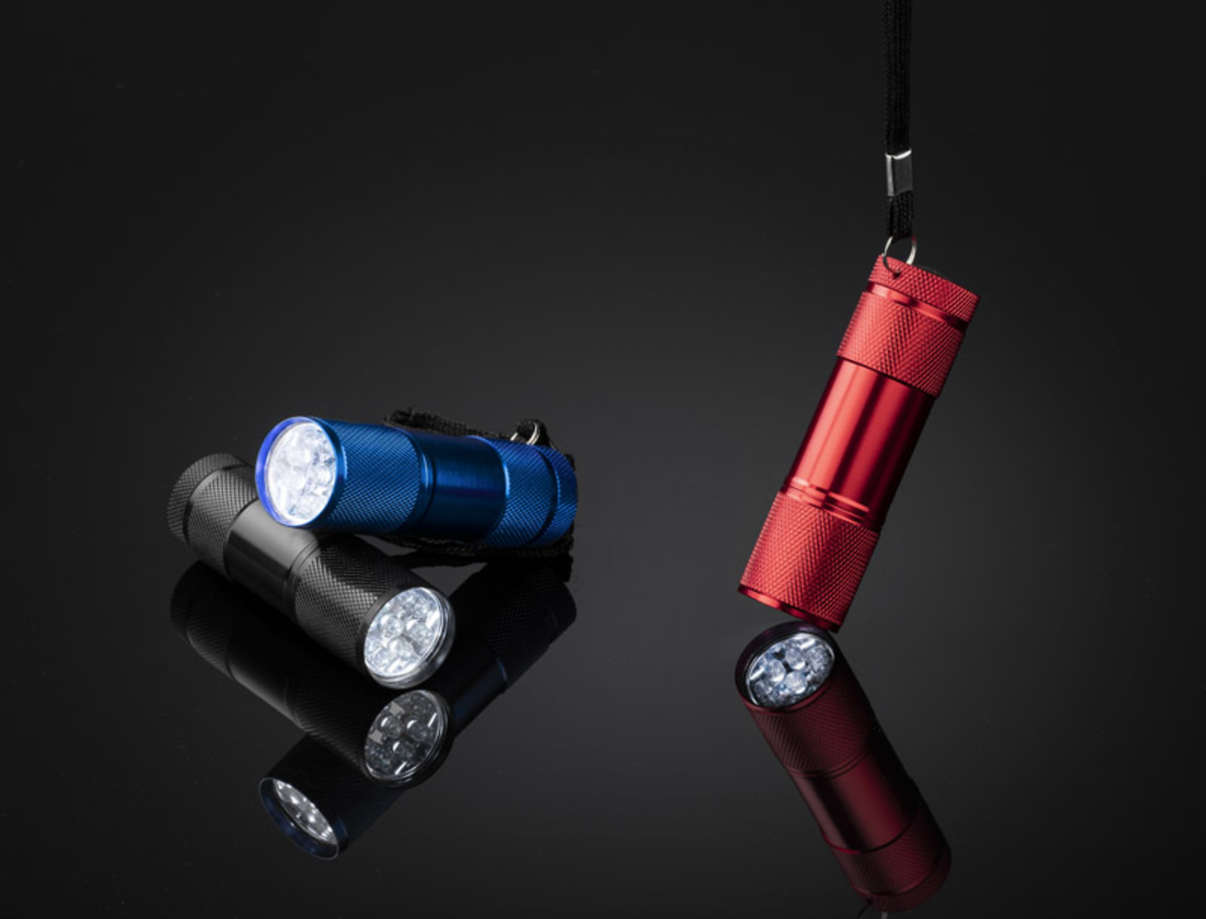 Metalová baterka s 9 LED diodami. Logo bude vyryté.