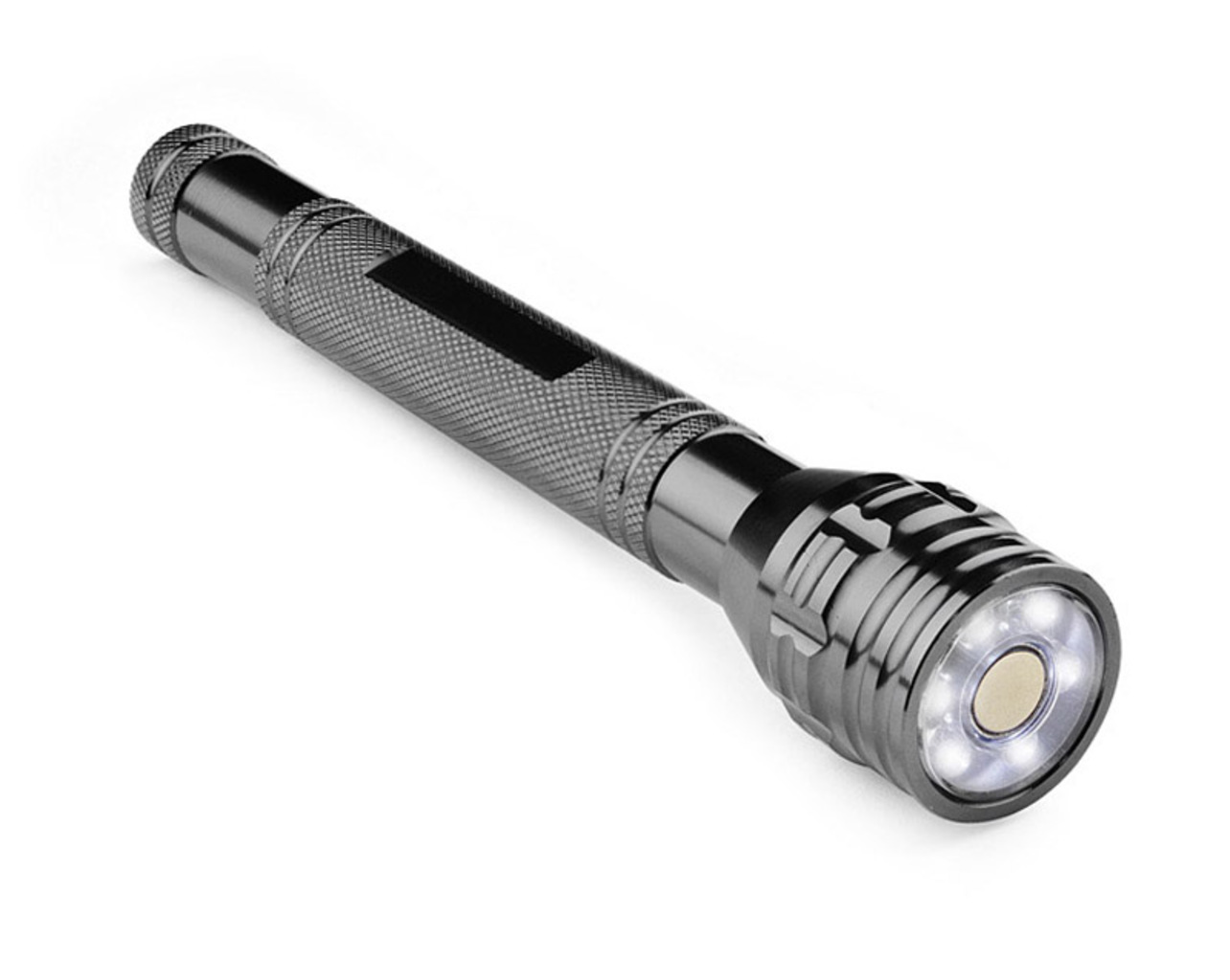 Latarka LED z 6 diodami i magnesem umieszczonym na teleskopowym ramieniu. Elastyczne końcówki pomogą Ci znaleźć małe metalowe przedmioty i wyciągnąć je za pomocą magnesu. Logo będzie wygrawerowane.