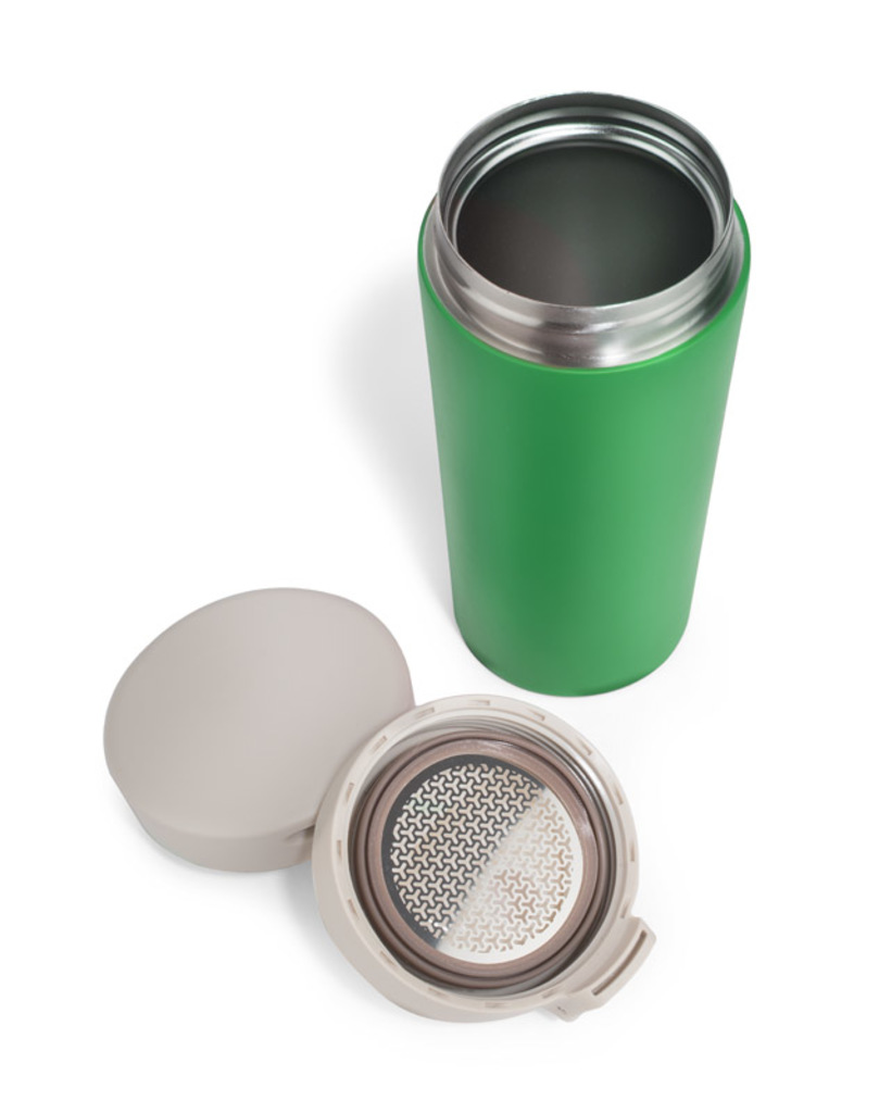 Termohrnek STAR je perfektním spojením komfortu a užitečnosti. Hrnek s jednoduchými vzory a s uzavíráním zabezpečeném blokací, která zabraňuje náhodnému otevření otvoru pro pití. Objem 350 ml je perfektní na ranní kávu. STAR uspokojí také milovníky čaje, protože je vybaven dodatečným sítkem na listy čaje. Díky vzduchoprázdné tepelně izolační vrstvě hrnek STAR udržuje teplotu nápoje déle než 13 hodin. Vnitřek je výroben z nerez oceli zvýšených standardů.