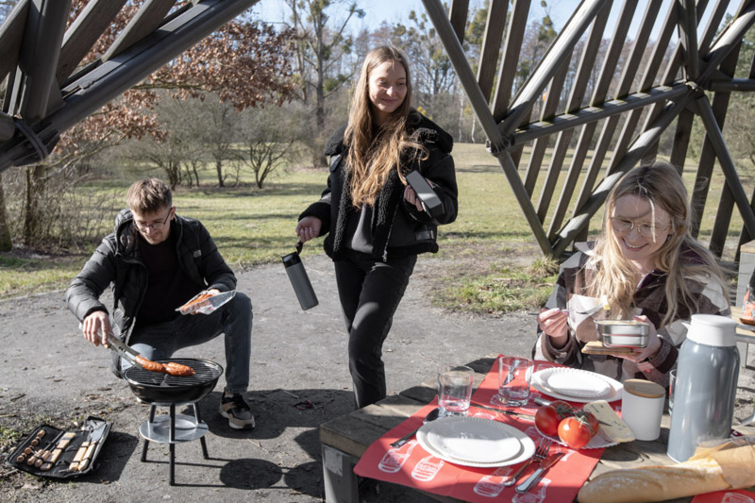 červená, kov, plast, bambus, silikon