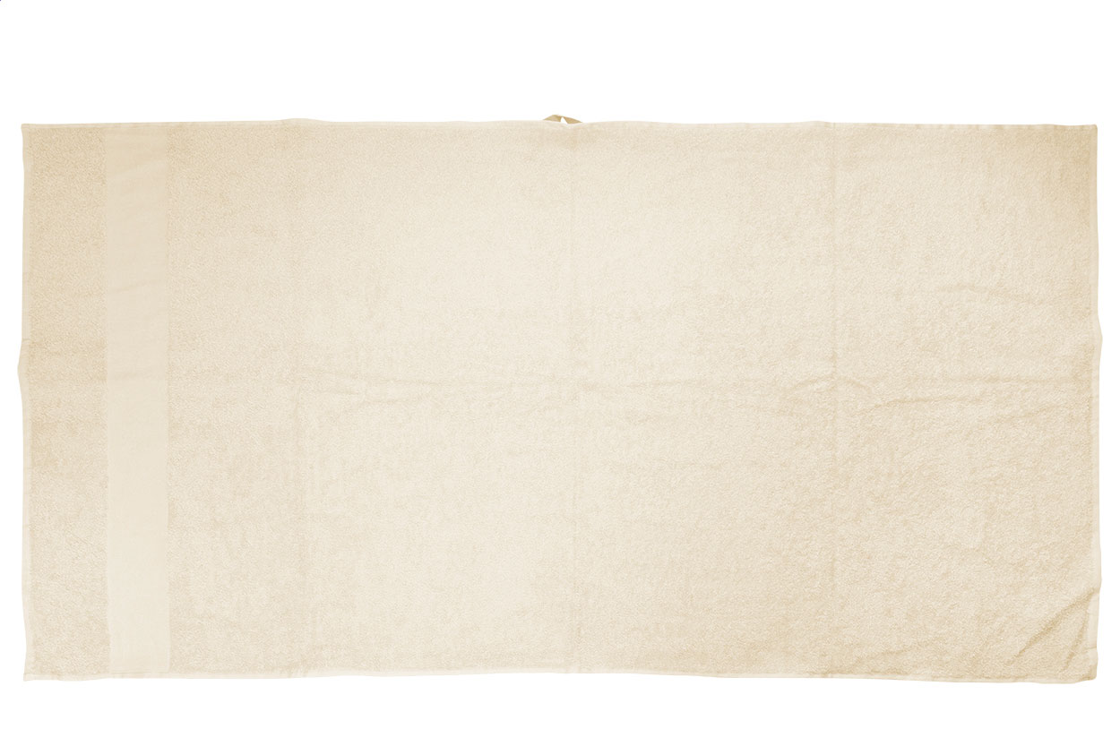 Bavlněná froté osuška s poutkem na zavěšení a potiskovatelnou bordurou. 100% bavlna, 360 g/m².