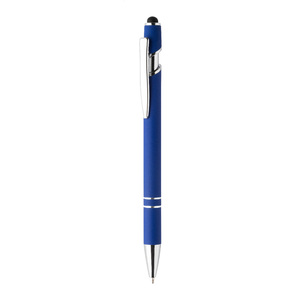 Kuličkové pero a pero pro dotykovou obrazovku z recyklovaného hliníku s pogumovaným tělem a chromovanými detaily. S modrou náplní.