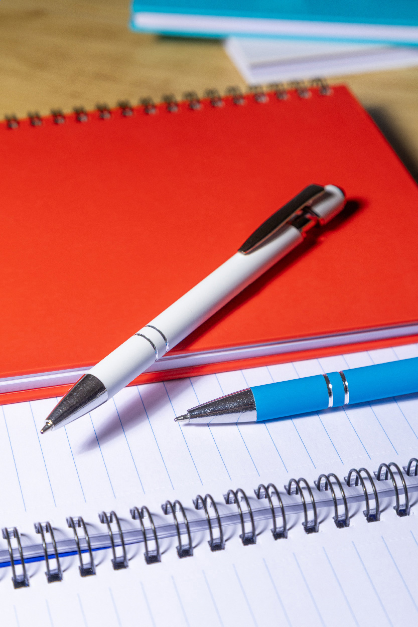 Kuličkové pero a pero pro dotykovou obrazovku z recyklovaného hliníku s pogumovaným tělem a chromovanými detaily. S modrou náplní.