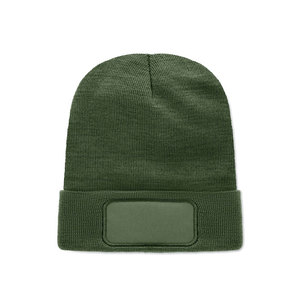 Unisex pletená čepice z měkkého elastického polyesteru RPET s lemem a prostorem pro výšivku.