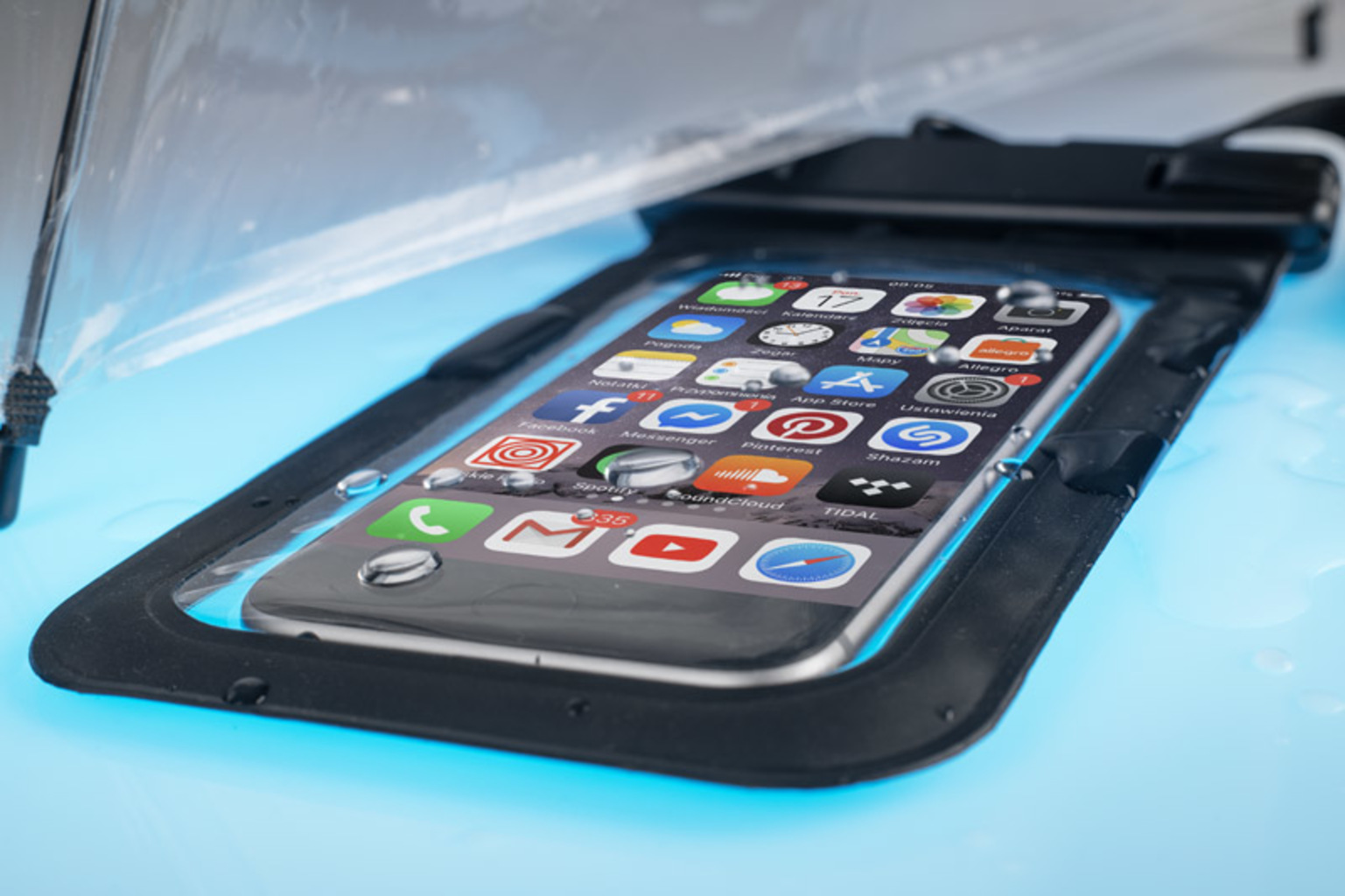 Voděodolné pouzdro SPLASH chrání telefon před vodou, pískem a prachem a zároveň umožňuje plné ovládání dotykové obrazovky. Podporuje také funkci otisku prstu bez nutnosti vyjmutí zařízení. Těsné uzavření zajišťuje bezpečné uložení telefonu a přiložený plochý popruh o délce 45 cm umožňuje pohodlné nošení na krku nebo připevnění k tašce. Praktický doplněk na pláž, k bazénu, na kajak nebo do deště.