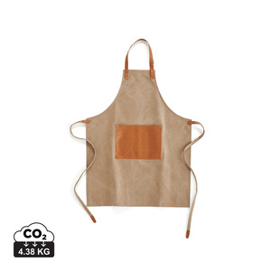 Robustní zástěra ze sepraného plátna 500 g/m2 s detaily z veganské kůže. Zástěra, která stárne důstojně.