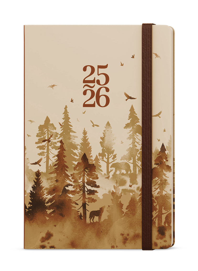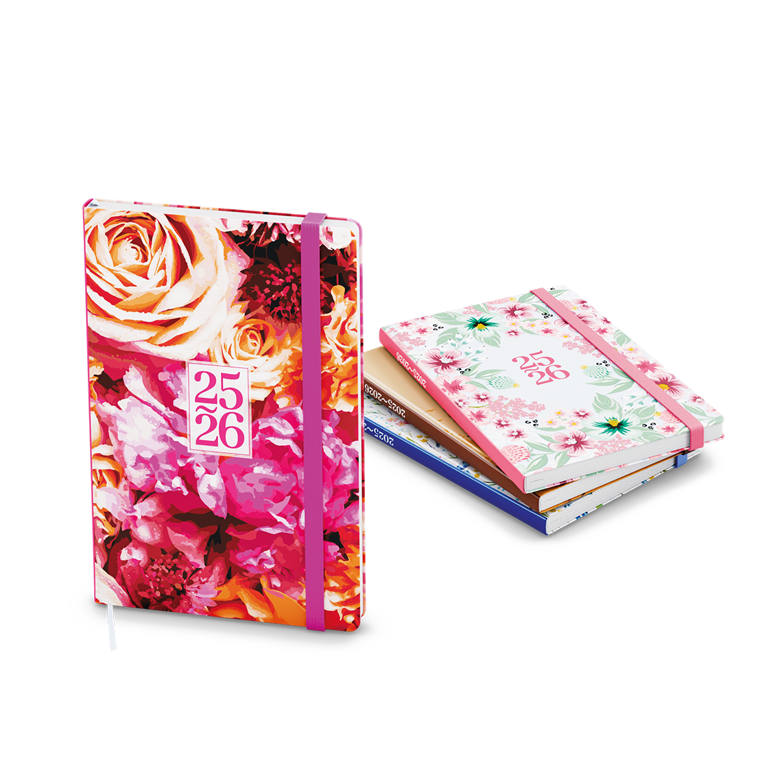 | Barva a materiál: | šitá vazba V8, tištěná grafika potažená matným laminem s parciálním lakem, kulaté rohy, gumička, stužka | ||||||||||||