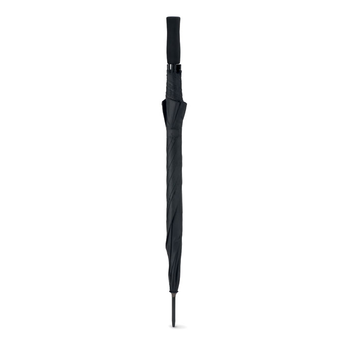 Luxusní 23 palcový automatický deštník ze 190T potah materiálu, černá kovová konstrukce. Černé ABS pogumované držadlo. 2 skládací sekce. Ladící pouzdro.