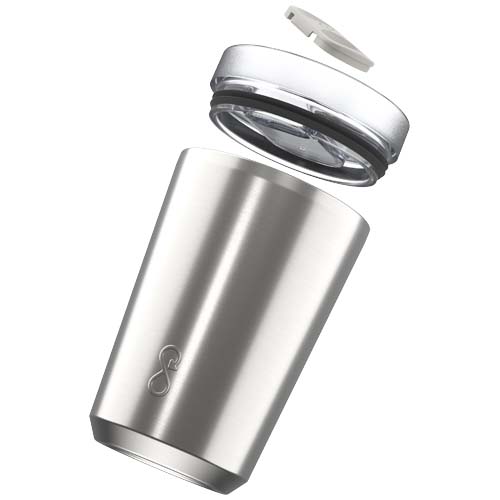 350ml kelímek Ocean Bottle má dvojitou tepelnou izolaci, která udrží nápoje teplé až čtyři hodiny a studené až deset hodin. Bez problémů se vejde pod většinu kávovarů a také do většiny držáků nápojů do auta. Každý cestovní hrnek je zcela uhlíkově neutrální a představuje 1 000 sesbíraných plastových lahví pro zlepšení životní úrovně v pobřežních komunitách. Kelímek je vyroben z 90 % z recyklované nerezové oceli a dalších recyklovaných materiálů. Dodává se v dárkové krabičce z recyklované lepenky.