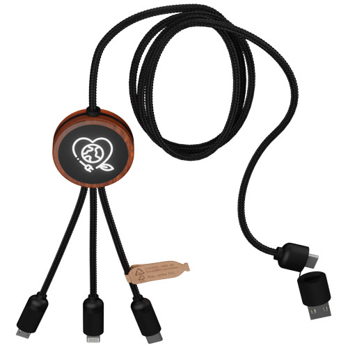 40W nabíjecí kabel 5v1 z rPET se svítícím logem a kulatým dřevěným pouzdrem SCX.design C37