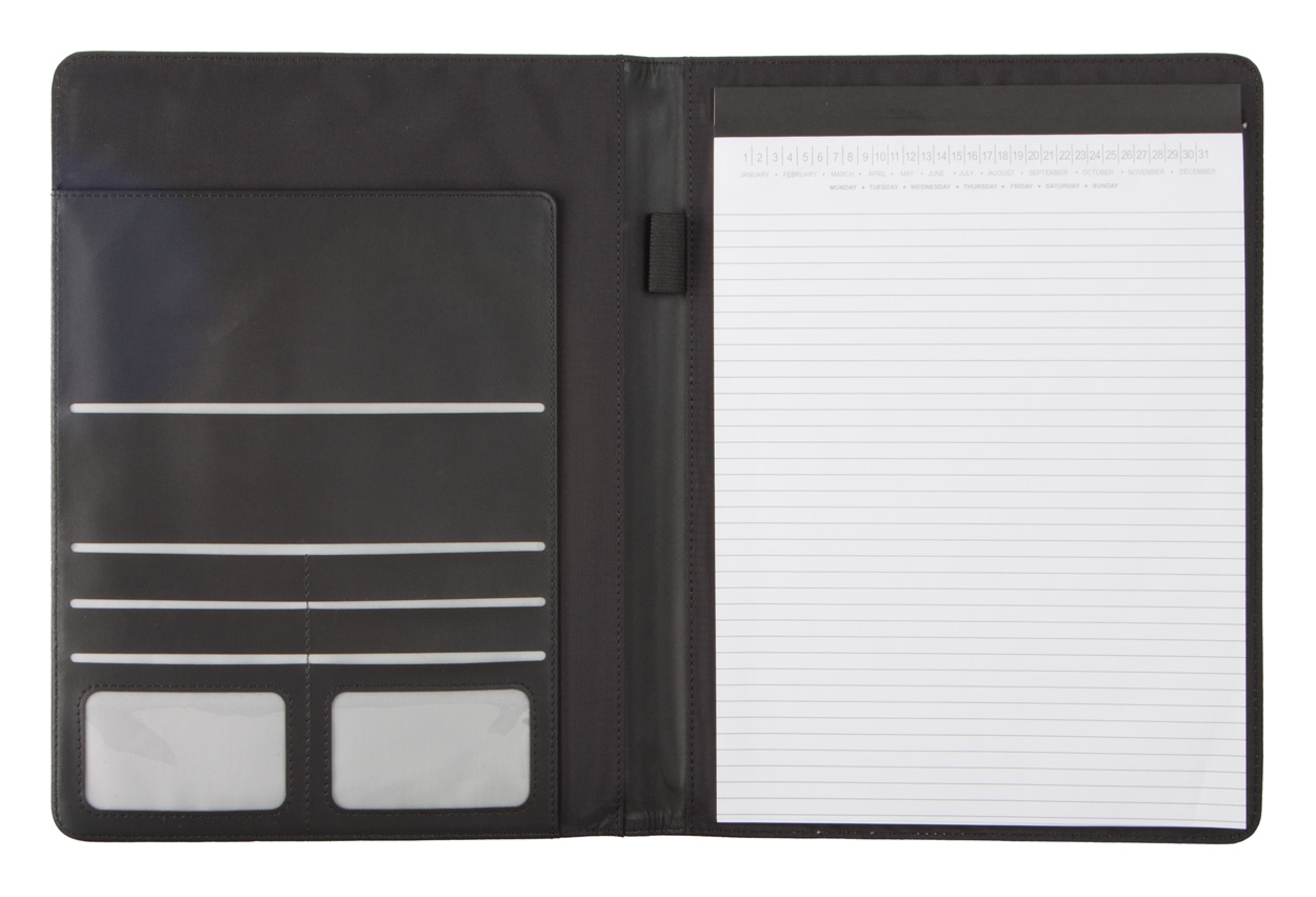 A4 sloha na dokumenty z PU kůže s 20 listým linkovaným blokem, kapsou na vizitky a místem pro propisku.