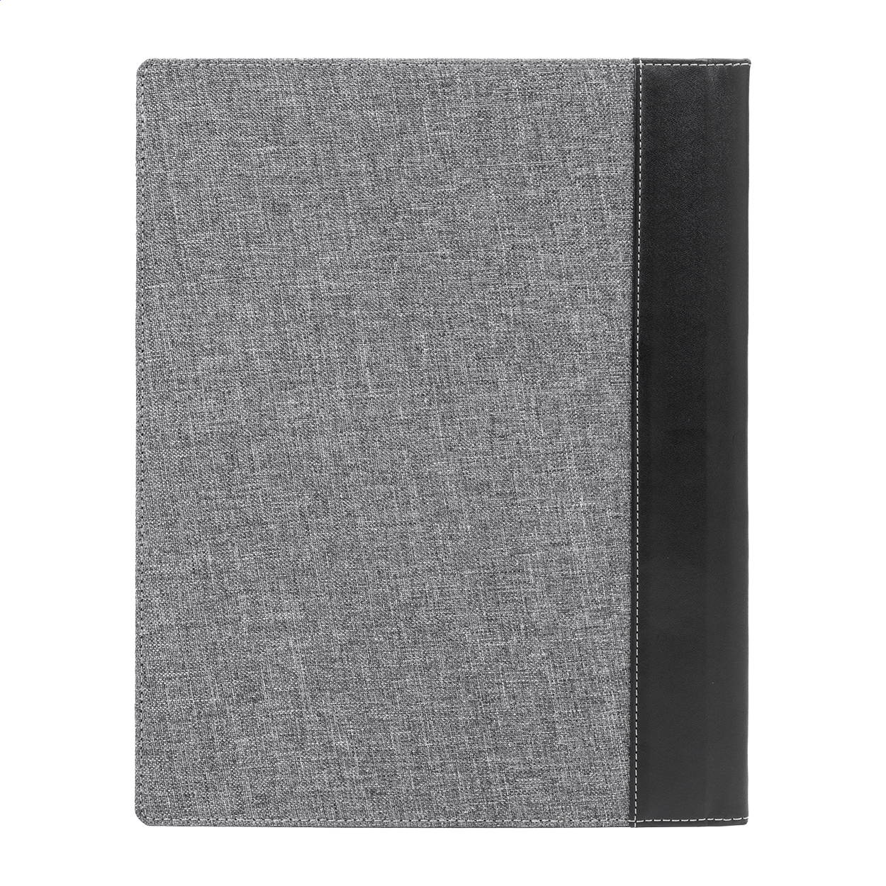 A4 sloha na dokumenty s deskami z PU kůže a plátna s kovovým štítkem a s 20 listým linkovaným blokem.