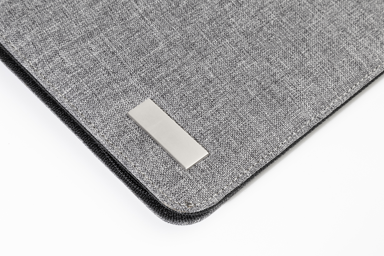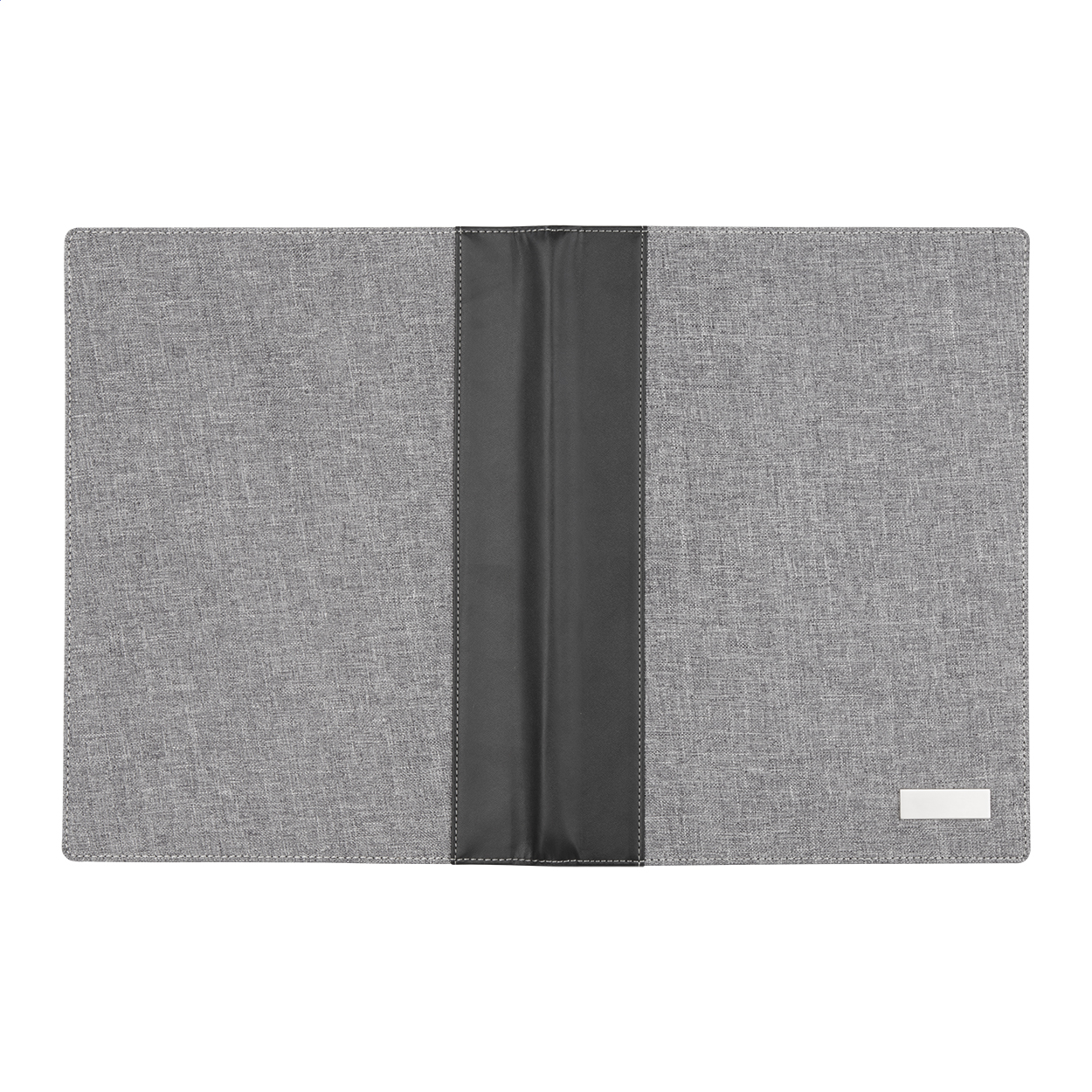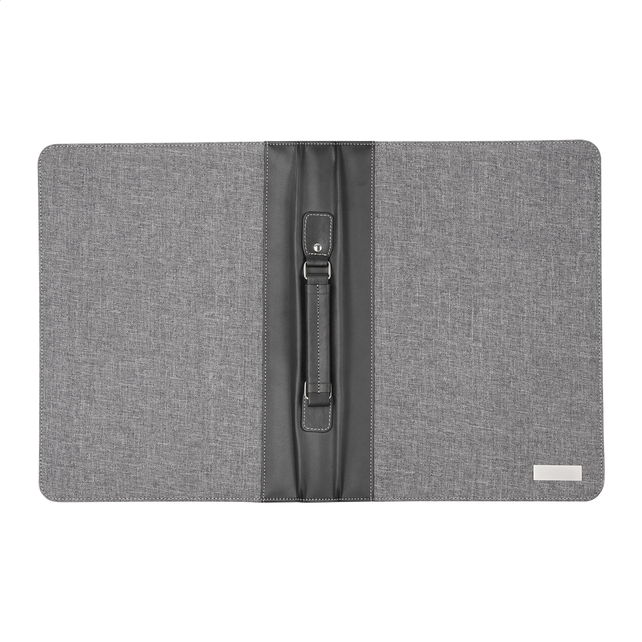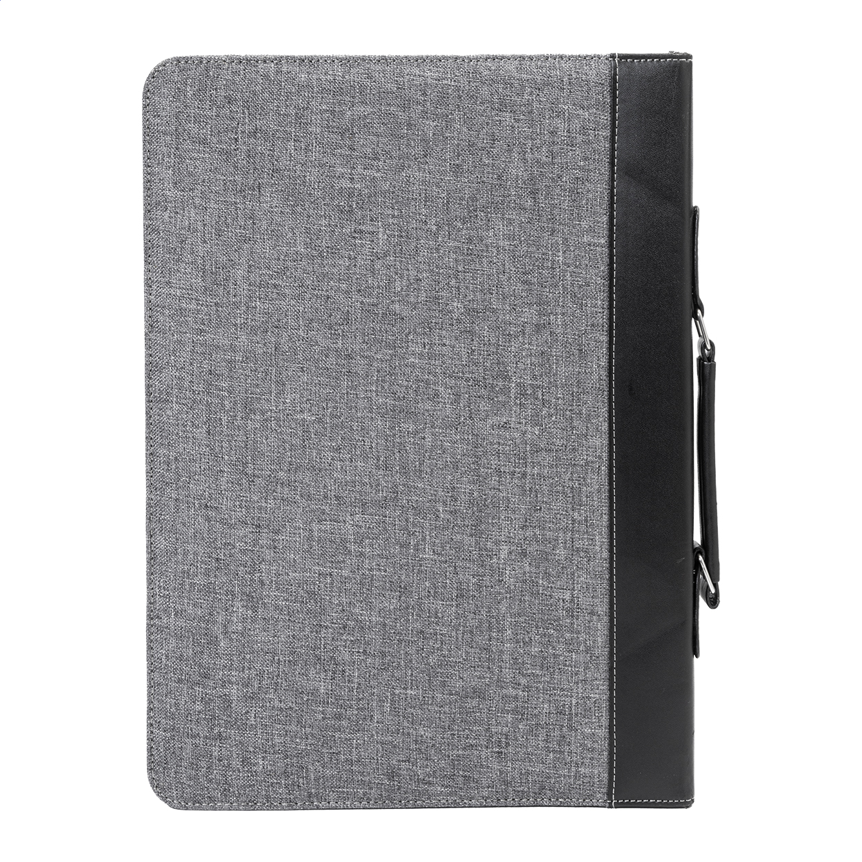 A4 sloha na dokumenty s deskami z PU kůže a plátna s kovovým štítkem, na zip s uchem a s 20 listým linkovaným blokem a solární kalkulačkou.
