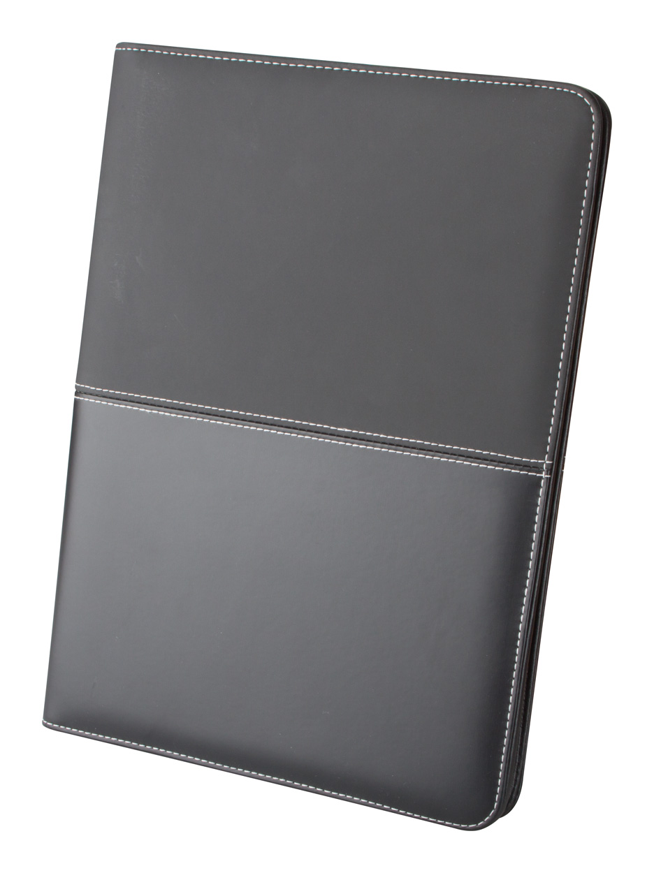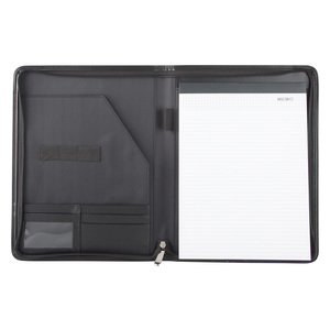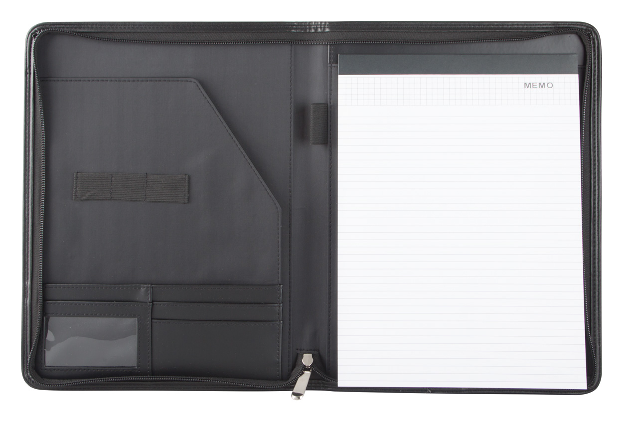 Sloha A4 na dokumenty na zip z umělé kůže s 20 listým linkovaným blokem, uchycením propisky a přihrádkou pro vizitky.