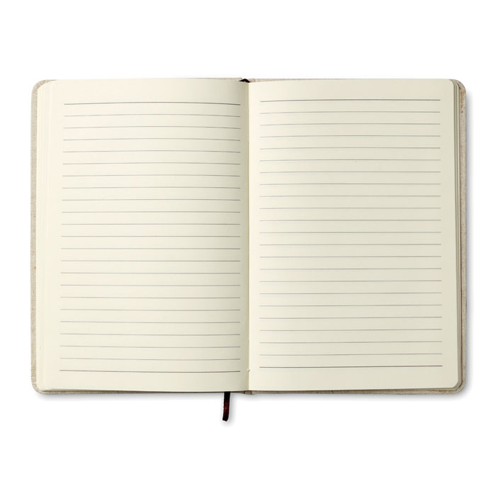 A5 zápisník v tvrdých deskách s plátěnou obálkou. 192 linkovaných stránek (96 listů). Zavírání na gumičku a záložka ve stejné barvě.