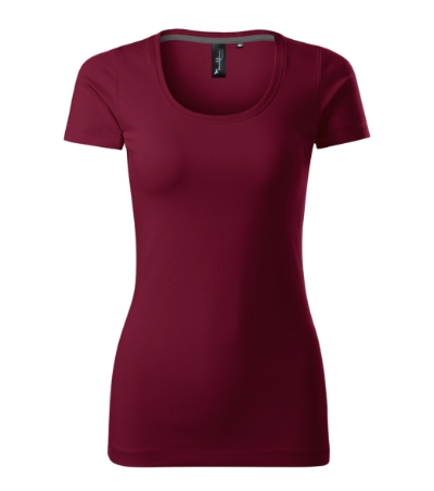strečový materiál udržující stálost tvaru, přiléhavý střih s bočními švy, hlubší kulatý výstřih, úzký lem průkrčníku z žebrového úpletu 1:1 s 5 % elastanu, vnitřní část průkrčníku začištěna kontrastní páskou, zpevnění ramenních švů páskou, krátké přiléhavé rukávy, dekorativní prošití