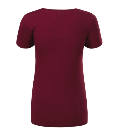 strečový materiál udržující stálost tvaru, přiléhavý střih s bočními švy, hlubší výstřih ve tvaru V, úzký lem průkrčníku z žebrového úpletu 1:1 s 5 % elastanu, vnitřní část průkrčníku začištěna kontrastní páskou, zpevnění ramenních švů páskou, krátké přiléhavé rukávy