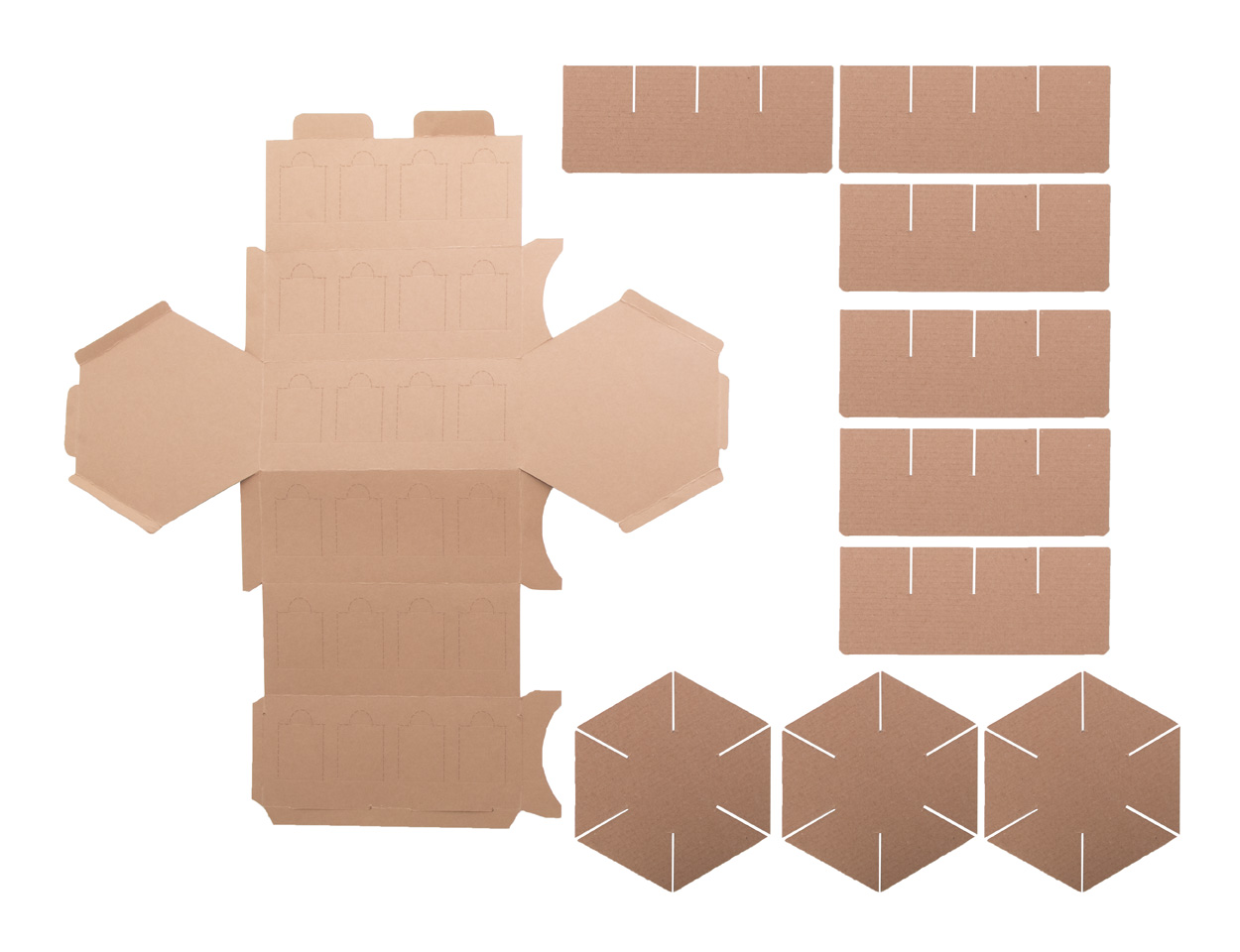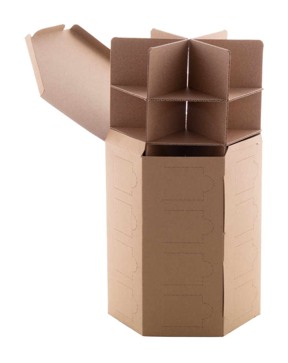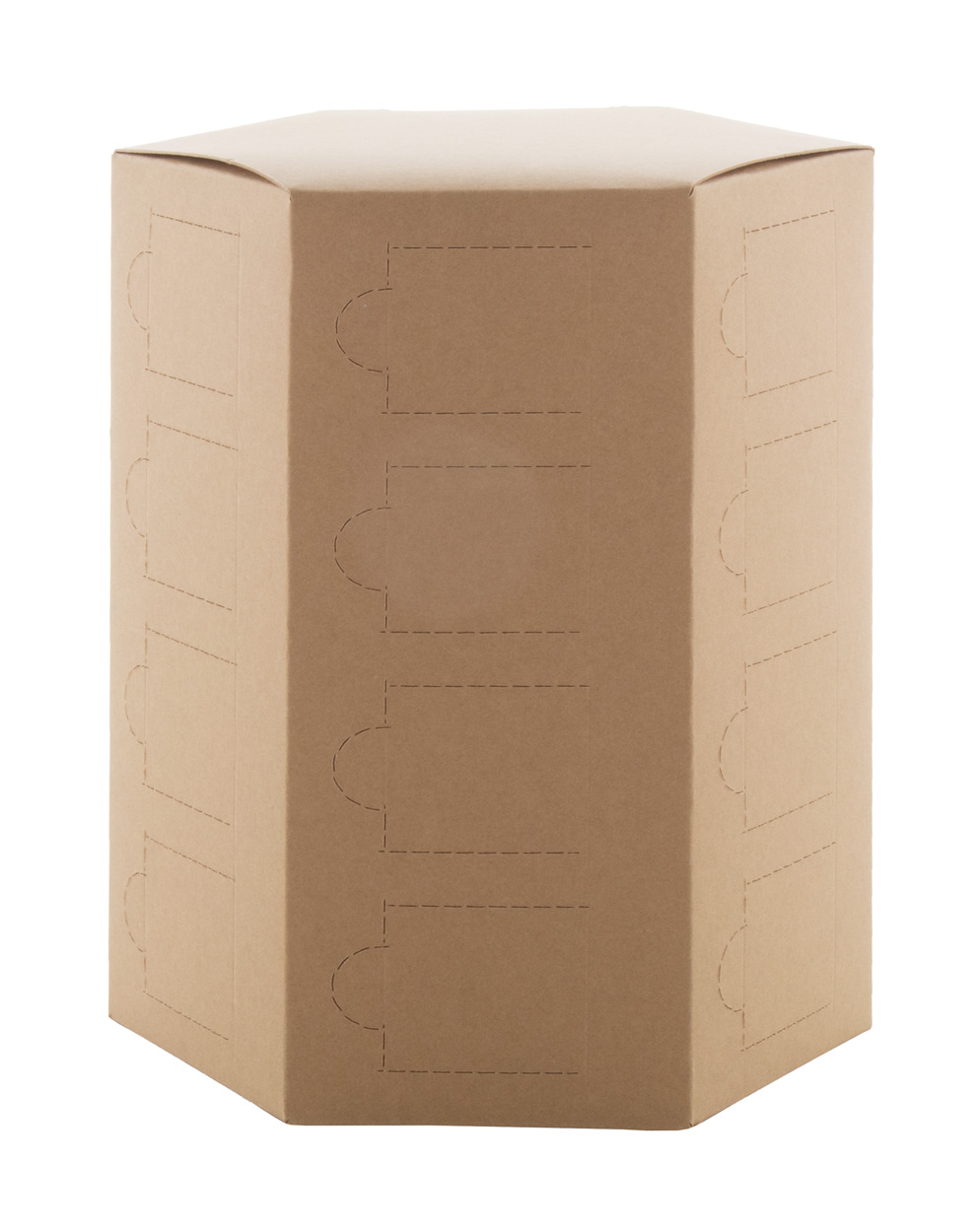 Na zakázku vyrobený plnobarevně tištěný šestihranný adventní kalendář z kraftového papíru s 24 přihrádkami. Dodáváno rozložené, bez sladkostí. Min. mn. 50 ks.