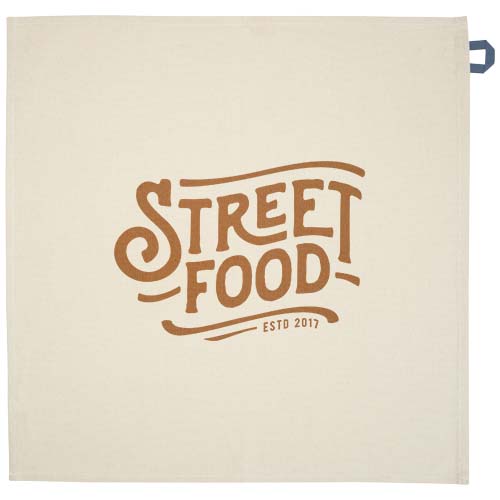 Kuchyňská utěrka vyrobená ze 100% recyklované bavlny s certifikací GRS o gramáži 200 g/m² s výrazným poutkem v kontrastní barvě. Velikost utěrky: 50 x 50 cm.
