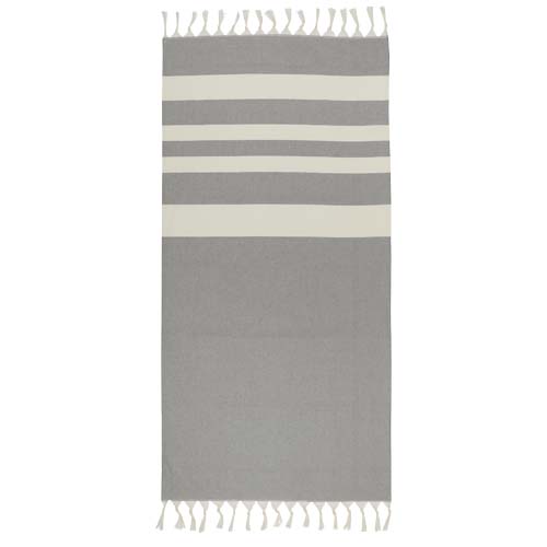 Ručník do orientálních lázní Anders poskytuje luxus a pohodlí díky velkorysým rozměrům (147 × 75,5 cm), které zajišťují dostatečné pokrytí, ať už ležíte u bazénu nebo si užíváte den na pláži. Ručník s elegantními střapci na obou koncích je vyroben z 30 % bavlny, 35 % recyklované bavlny s certifikací GRS a 35 % recyklovaného polyesteru s certifikací GRS, 180 g/m².