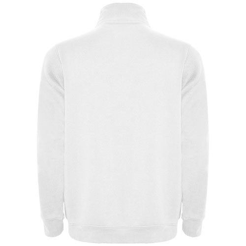 Mikina se stejným polovičním zipem a polo výstřih. Shodný vnitřní límec. Zesílené kryté švy na vnitřním límci. Manžety a pas s žebrováním 1x1. Model měří 185 cm a má na sobě velikost M.