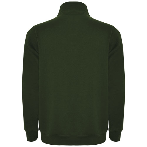 Mikina se stejným polovičním zipem a polo výstřih. Shodný vnitřní límec. Zesílené kryté švy na vnitřním límci. Manžety a pas s žebrováním 1x1. Model měří 185 cm a má na sobě velikost M.