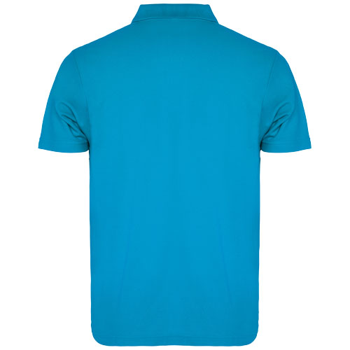 Polokošile s krátkým rukávem, zapínáním na 3 knoflíky a 1x1 žebrovaným límcem. Zesílené kryté švy v límci. Odnímatelná etiketa. Model měří 190 cm a má na sobě velikost L.