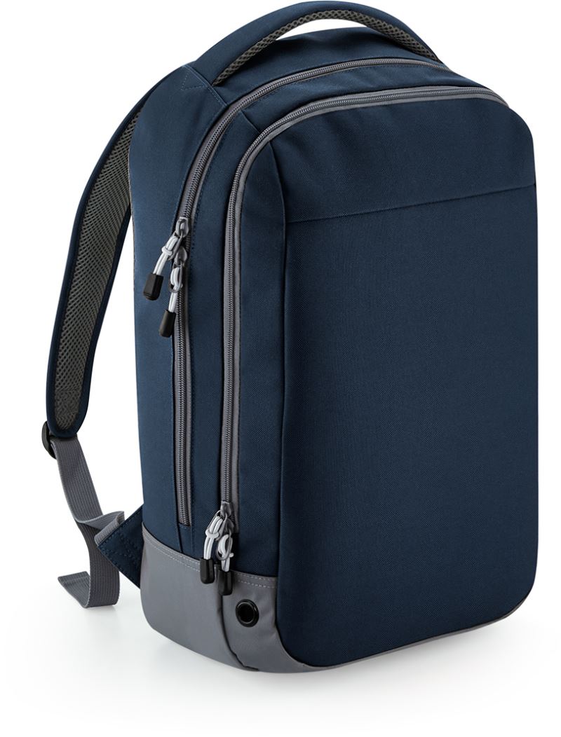 Vodoodpudivý materiál, polstrovaná rukojeť, nastavitelné, polstrované a vyztužené popruhy, přední kapsa s organizérem, vnitřní zasouvací kapsa, kapsa na láhev, ergonomická prodyšná polstrovaná záda ze síťoviny, ventilační kovové otvory, držák na sluchátka, štítek TearAway, objem 23l, rozměry: 30x50x18cm, pouze čistit houbičkou, nesmí se prát