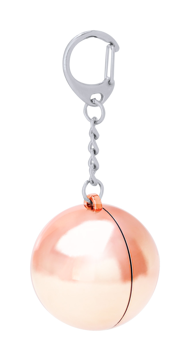 Kulatý vanilkový balzám na rty v kovovém držáku s kovovým kroužkem na klíče. S ochranou SPF15.