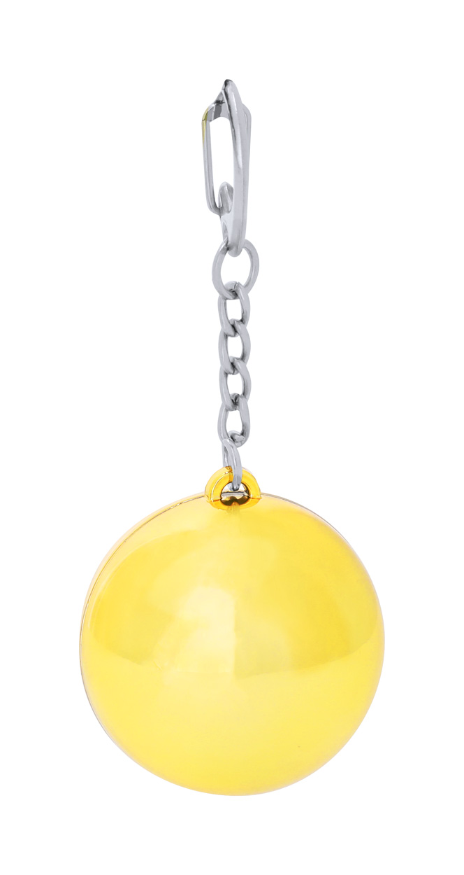 Kulatý vanilkový balzám na rty v kovovém držáku s kovovým kroužkem na klíče. S ochranou SPF15.