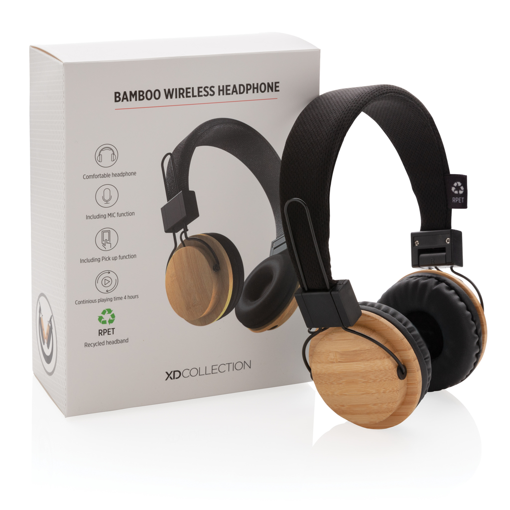 EKO bezdrátová sluchátka vyrobená z pečlivě vybraných udržitelných materiálů. Vlastní sluchátka vyrobená z bambusu, čelenka z polyesteru. Skládací mechanizmus, bezdrátová technologie BT 5.0 pro hladké připojení na vzdálenost až 10m. Baterie s kapacitou 200 mAh umožňuje poslech po dobu až 4 hodin na jedno nabití (2 hodiny). Včetně mikrofonu pro příjem hovorů.