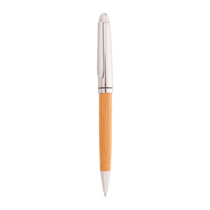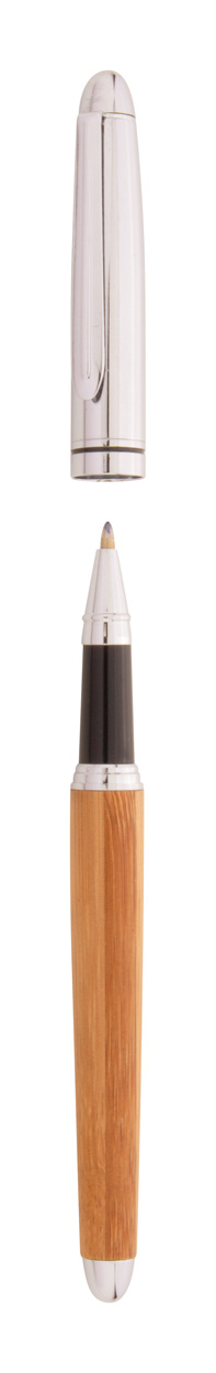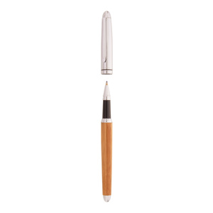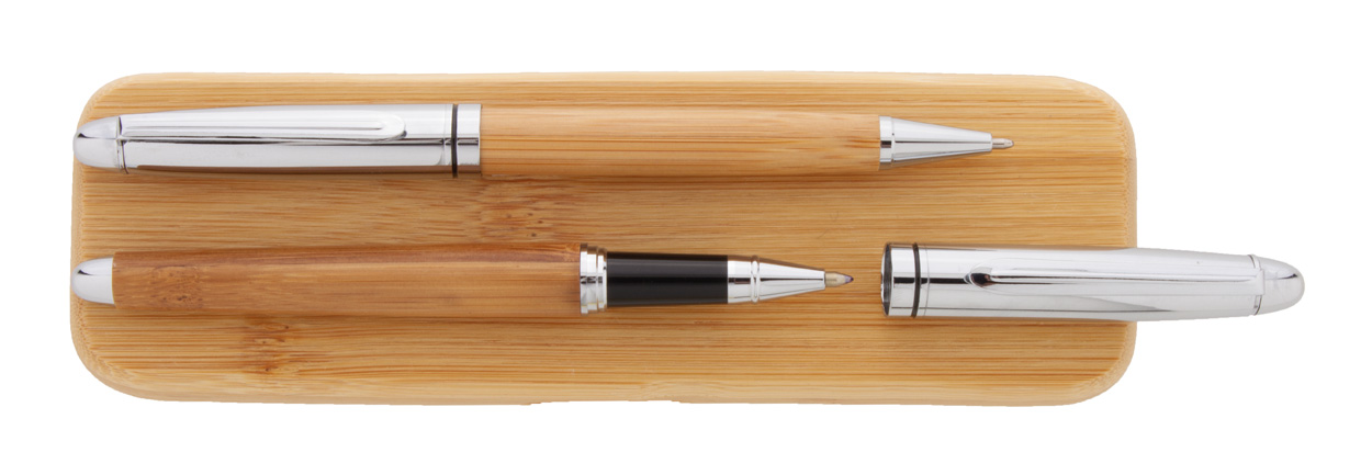 Elegantní sada s kuličkovým perem a rollerem, bambus/kov v dárkové krabičce z bambusu. S modrou náplní.