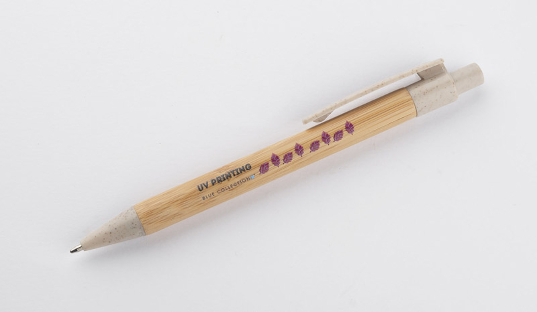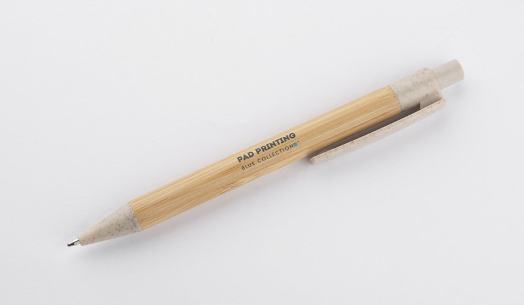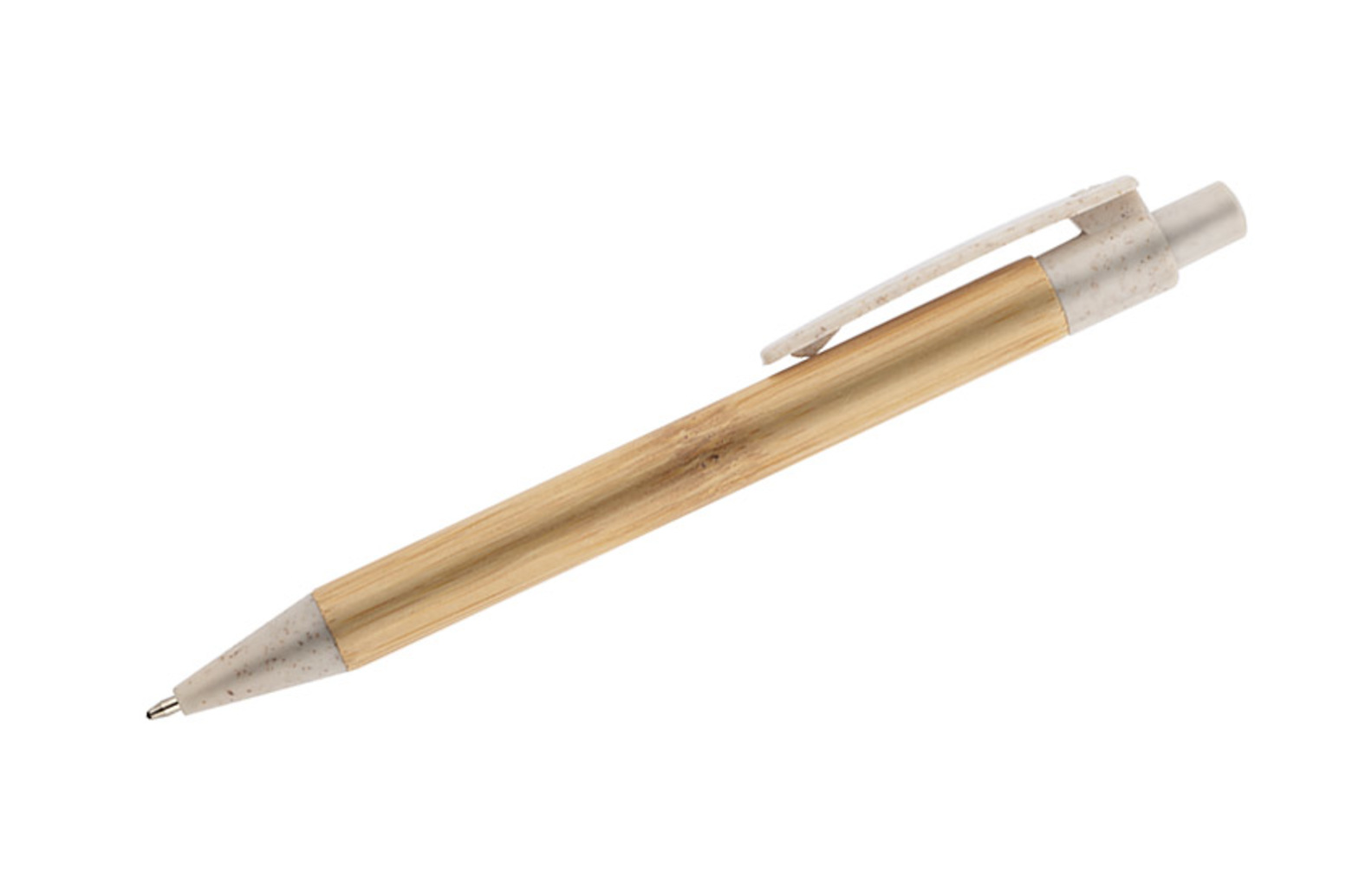 BAMMO je klasické pero vyrobené z materiálů šetrných k životnímu prostředí. Bambusové tělo bylo kombinováno s prvky vyrobenými z materiálu s 50% obsahem slámy. Automatické kuličkové pero, modrá náplň.