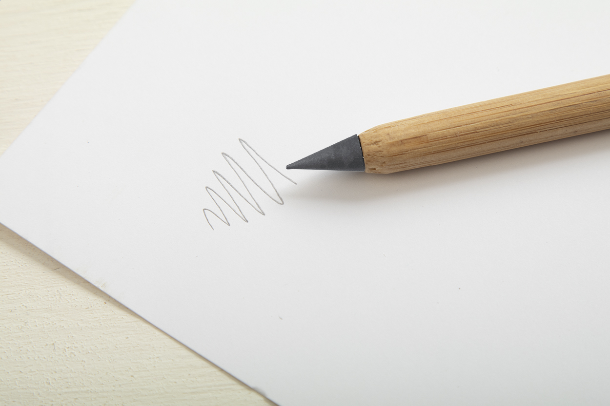 Bambusové pero bez inkoustu s dlouhou životností, s hrotem z kovové slitiny, který oxiduje papír. Toto pero píše podobně jako tužka a navíc je smazatelné.