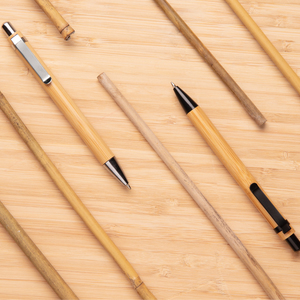 Bambusové pero s kovovou sponou a kovovým hrotem.