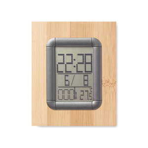 Bambusový stojan na tužky s LCD kalendářem, budíkem a teploměrem. 2 baterie jsou součástí balení. Bambus je přírodní materiál, může dojít k mírným změnám barvy, dekorace a velikosti.