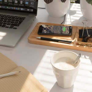 Bambusový stolní organizér s bezdrátovým nabíjením 5W