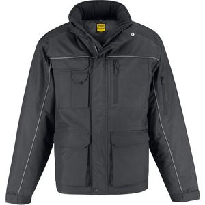 Vysoce funkční, těžká pracovní bunda, ergonomická, skrytá kapuce, nastavitelné manžety se suchým zipem, 12 multifunkčních kapes, 1 snadno přístupná kapsa na smartphone se suchým zipem na vnější straně, 1 kapsa na rukávu se zipem, 3 další vnější kapsy na pero, 2 přední kapsy s dvojitým vstupem a fleecové kapsy k zahřátí rukou s bočním vstupem stejně jako klopa se zapínáním na suchý zip, 1 našitá vnitřní kapsa se suchým zipem, prodloužená záda, přístup k zušlechtění na zádech a hrudi, pratelné na 30°, nelze žehlit, nelze sušit v sušičce