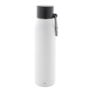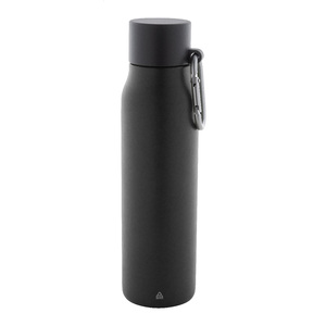 Dvoustěnná vakuová láhev z recyklované nerezové oceli s víčkem z PP a karabinou z recyklovaného hliníku. 500 ml.