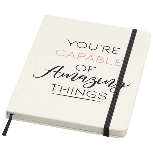 Zápisník s pevnou obálkou Bass A5 obsahuje 80 linkovaných listů papíru o gramáži 80 g/m2 a je vyroben z recyklovaných krabic od mléka.