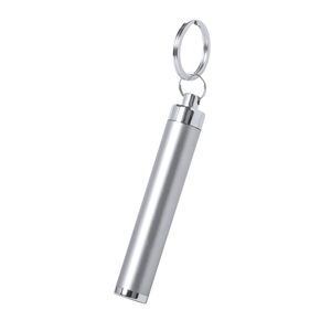 Plastová baterka s 1 LED světlem a kovovým kroužkem na klíče. Vygravírovaná loga na těle baterky svítí. Vč. knoflíkových baterií.