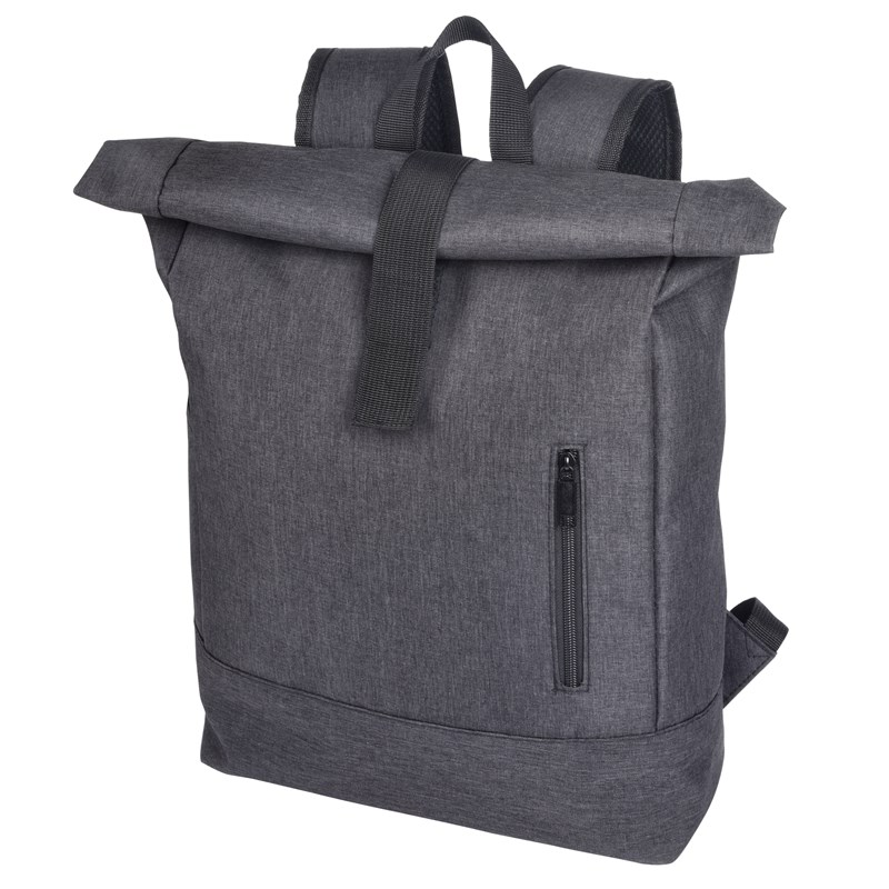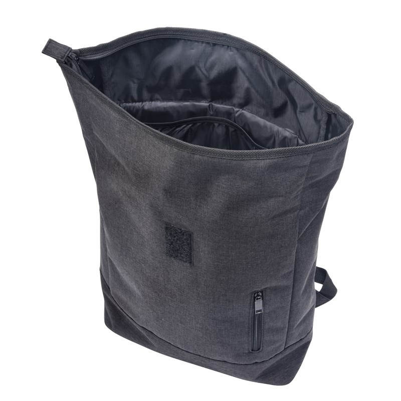 Svislá přední kapsa na zip, hlavní kapsa na zip a polstrovaná vnitřní kapsa na notebook nebo tablet, lze srolovat a uzavřít pomocí suchého zipu, polstrované ramenní popruhy a zádová část, madlo na uchopení.