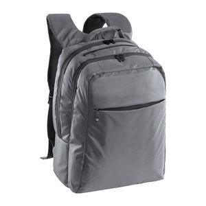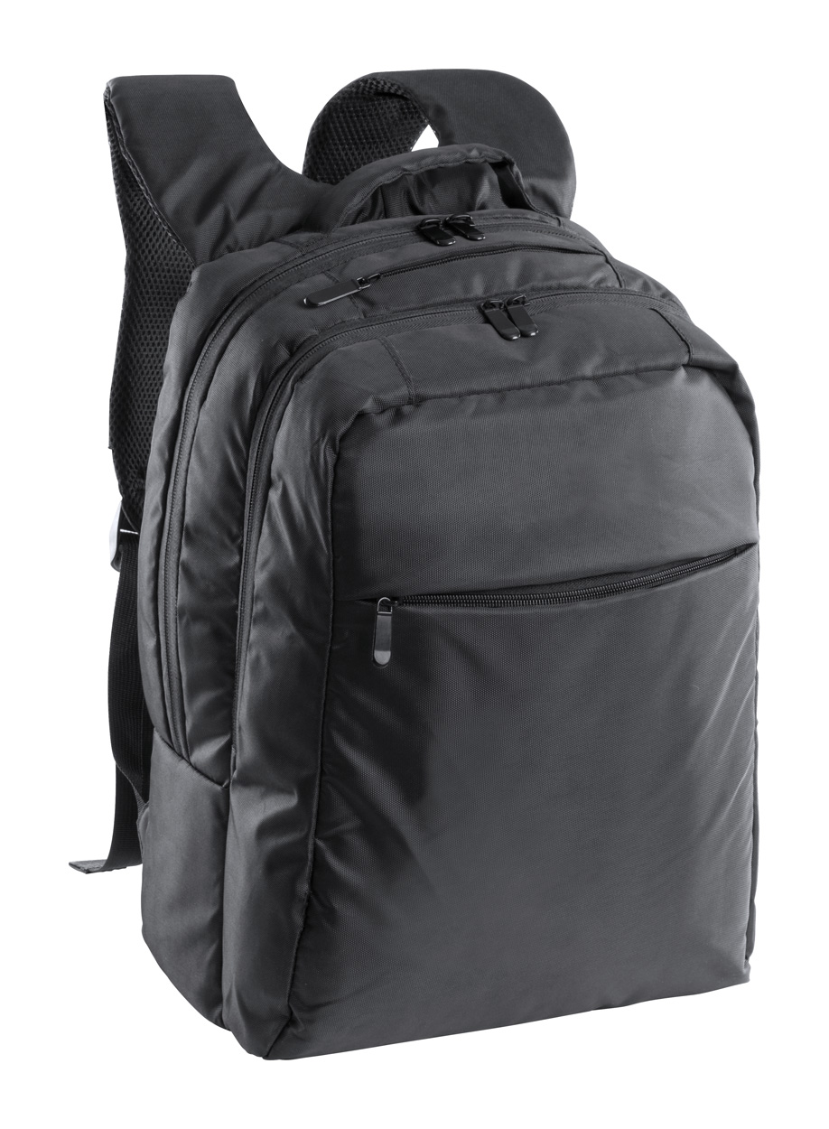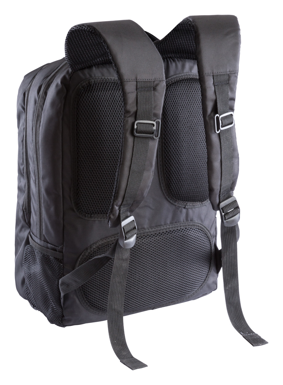 Batoh s mnoha přihrádkami na zip, vypolstrovanou přihrádkou na laptop (15"), vypolstrovanými zády a popruhy, 600D nylon.