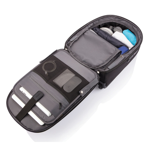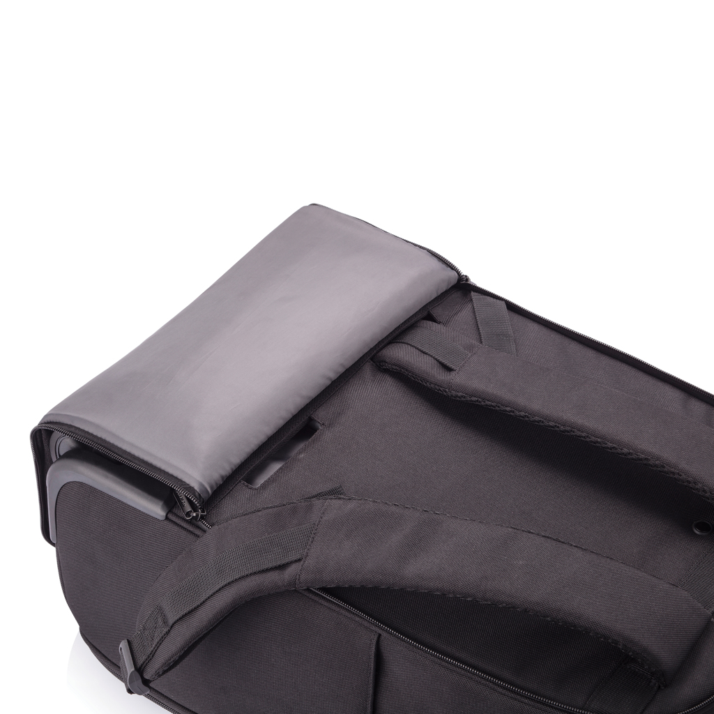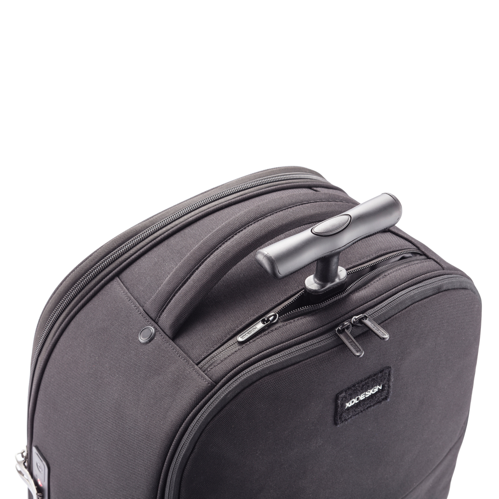 Pohodlný jako kufřík, praktický jako batoh. Cestovní batoh na kolečkách Bobby je ideálním společníkem na krátké výlety či každodenní cestování. Pro používání na kolečkách jednoduše schovejte ramenní popruhy do příslušné zadní části batohu a vysuňte madlo. Pro používání jako batoh, zasuňte madlo a upevněte ramenní popruhy. Kolečka jsou pak chráněna pro zamezení znečištění zad. Batoh je vybaven bezpečnostními prvky zabraňující vykradení, včetně TSA® zámku na číselný kód. Vnitřní část obsahuje hlavní oddíl na cestovní věci, lahev na vodu, kapsy na drobnosti a RFID kapsy. Přední část lze otevřít do 30° a nabízí prostor pro bezpečné uchování až 17" notebooku. Vyrobeno z rPET s technologií AWARE™ pro doložení skutečného obsahu recyklátu. Velikostí vhodné na palubu letadla. Ochranný vzor®